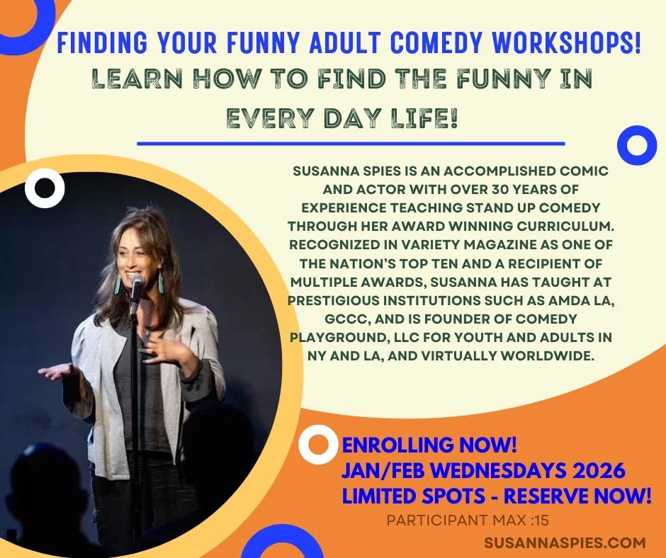 Stand Up with Susanna 2026 WORKSHOPS ON ZOOM! WEDNESDAYS: JAN 7 - FEB 11, 2026
